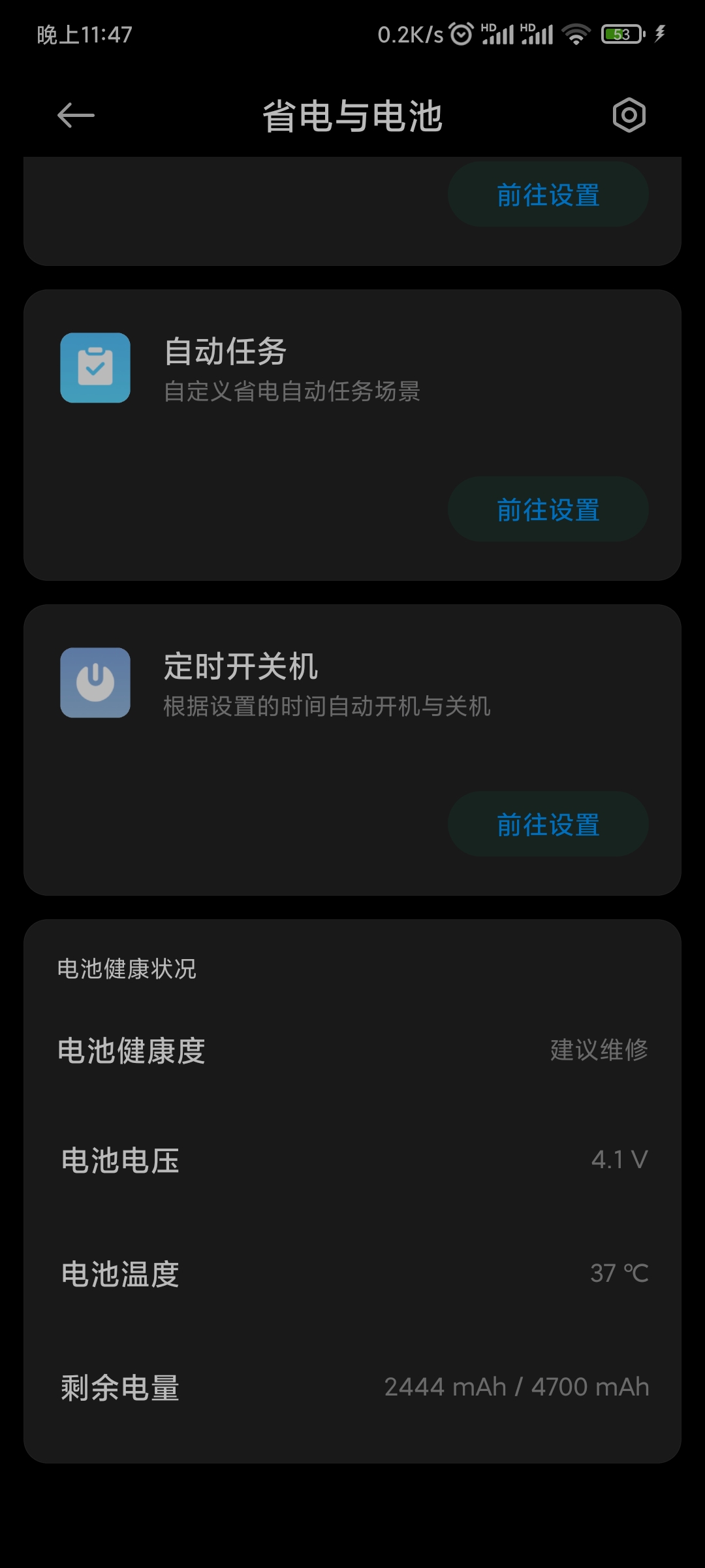 鲨雕学生党 发表于 2021-10-17 13:13 我电池健康状态显示极佳,然后电量低于十不能按电源键息屏,一按就关机,不按可以正常用到电量1%不关机 ...