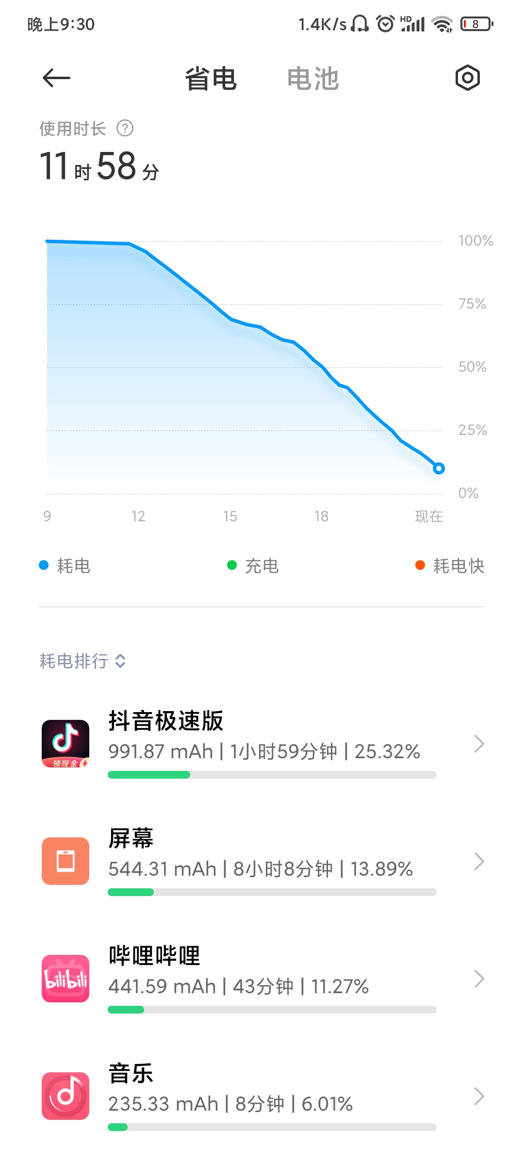 一块用了11个月的原装电池在WIFI情况下的中度使用