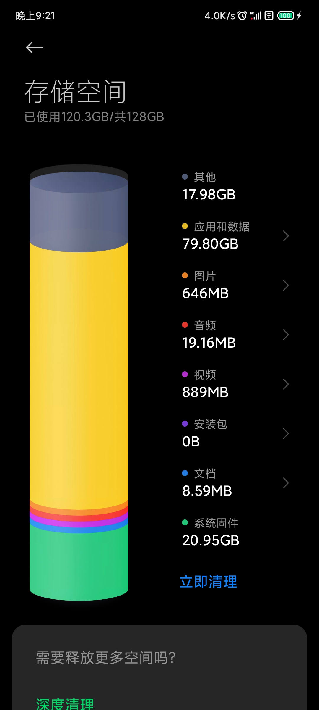 自带的清完了还有10几个g
