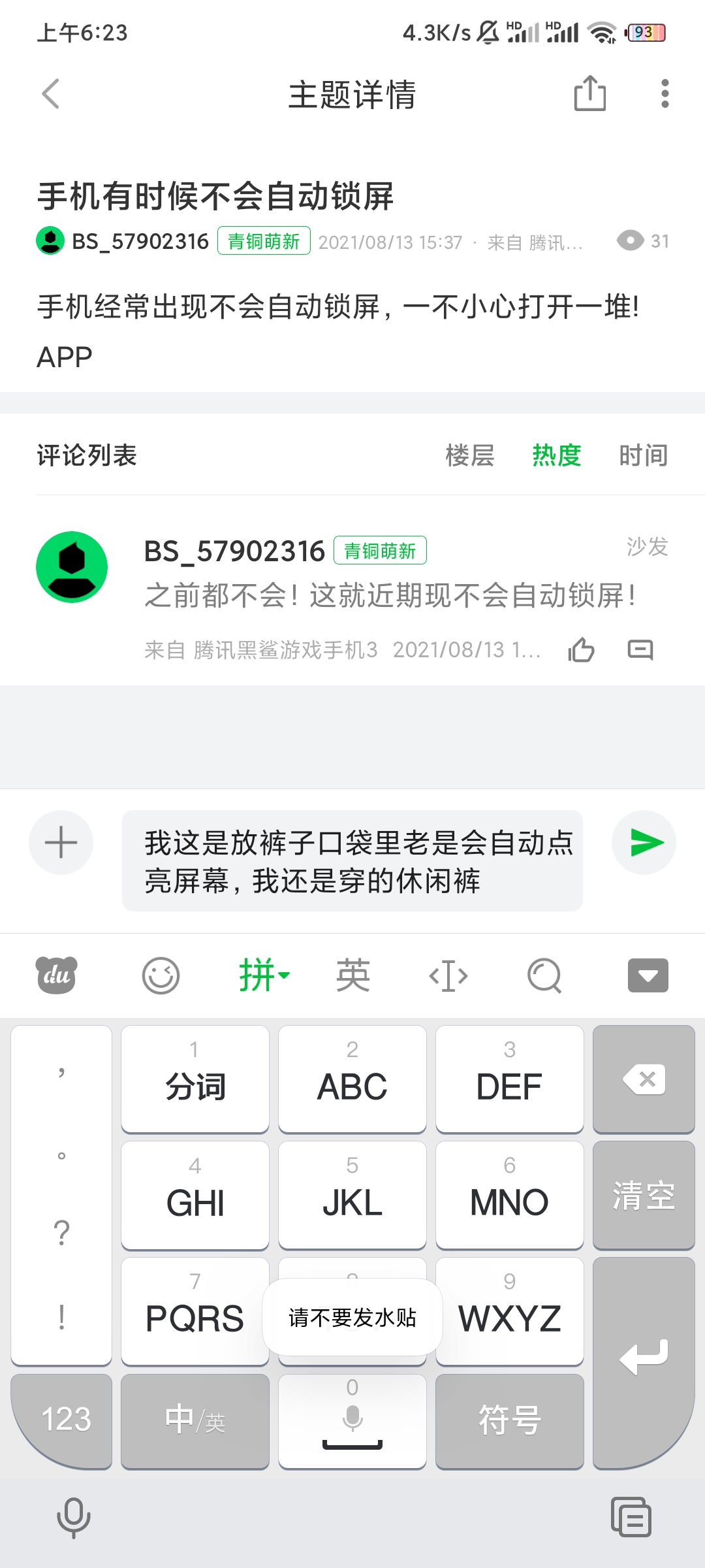 [问题&求助] 我正常回帖说我发水帖?
