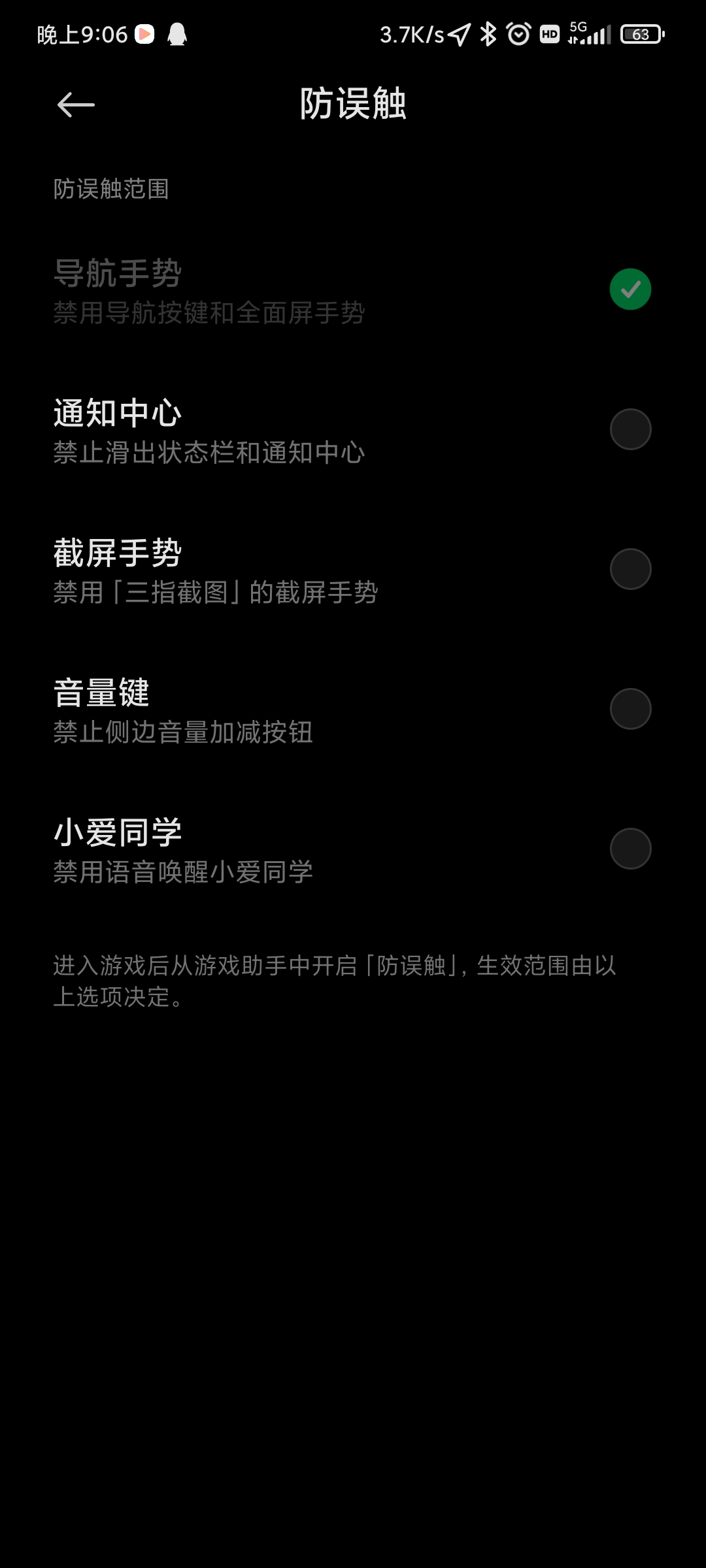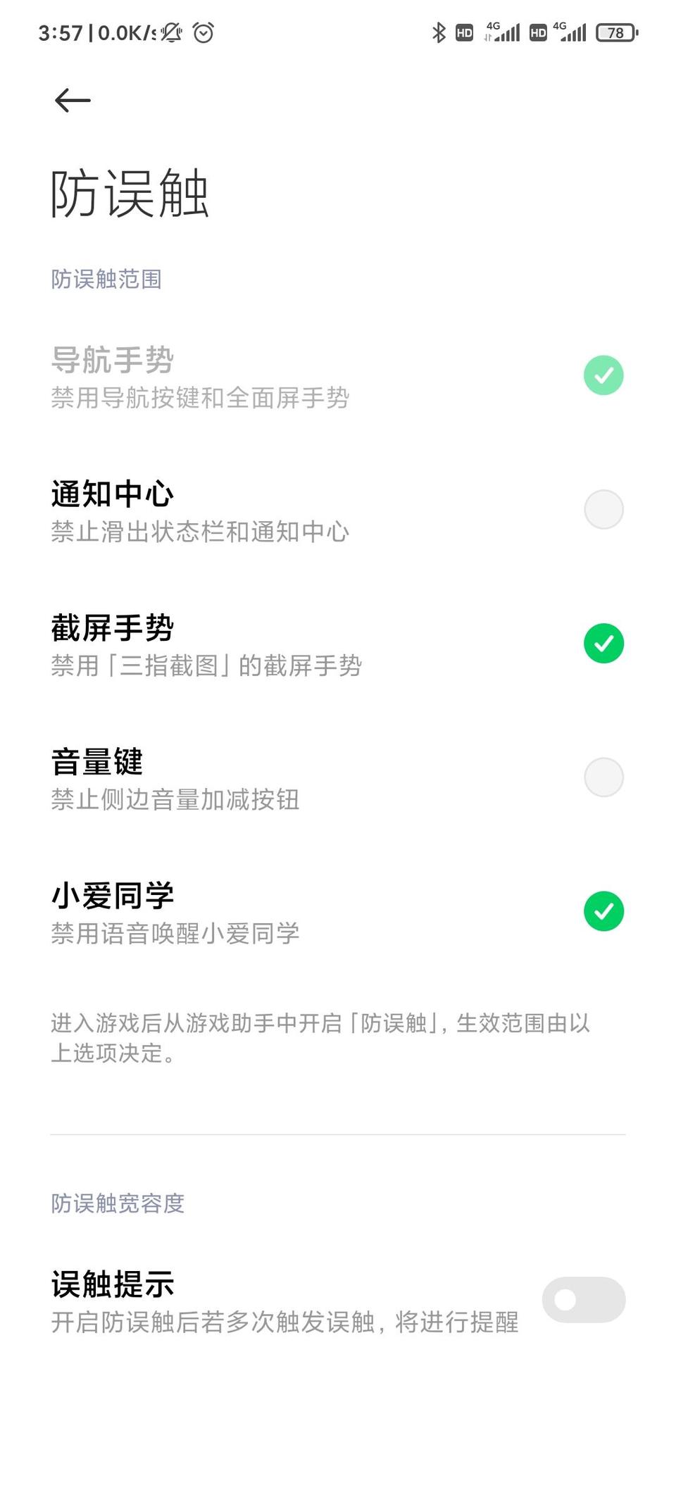 黑鲨3s没有防误触提示关闭功能,但是别人的有,每次