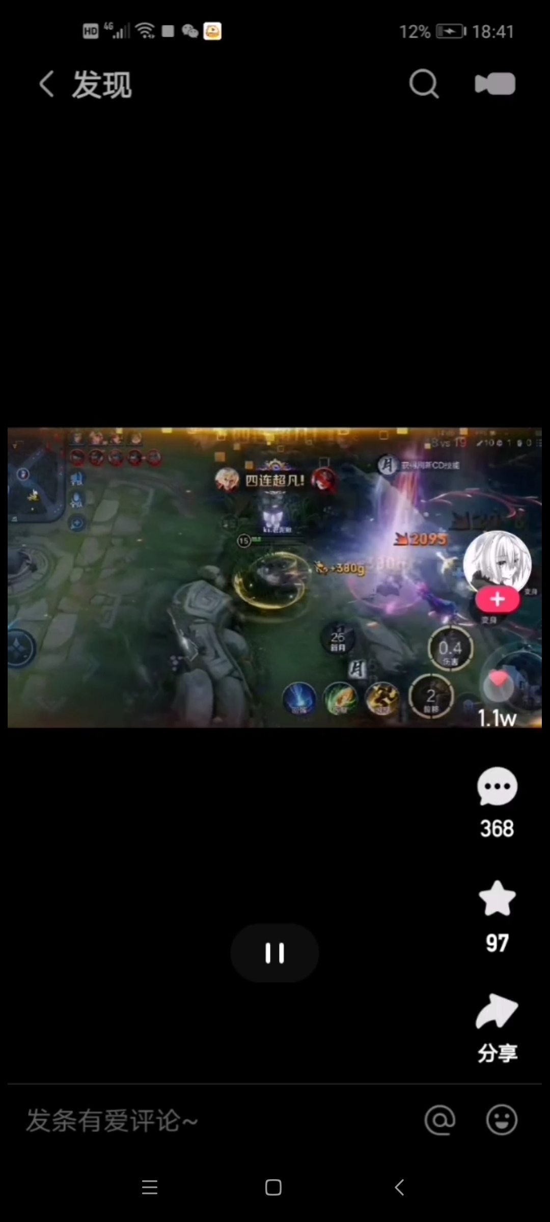 我以前的手机是黑鲨3S,王者击杀了人后在屏幕上面会有特效闪烁,就是这张图片四连超凡上面的灯,双杀,三杀,四杀,五杀灯都不一样,但是换了黑鲨4pro后就没有了
