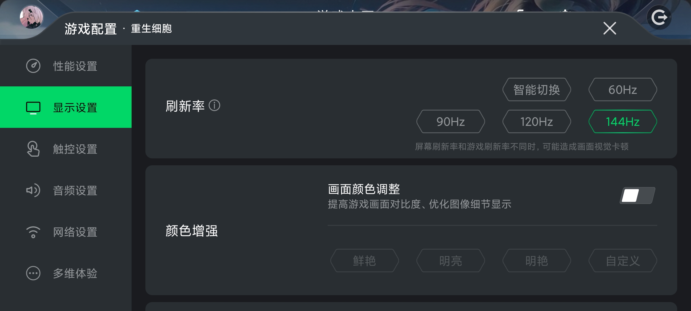 游戏里面开启这个144以后会变得特别灰绿怎么回事是bug吗还是屏幕本身的问题截图是一样的