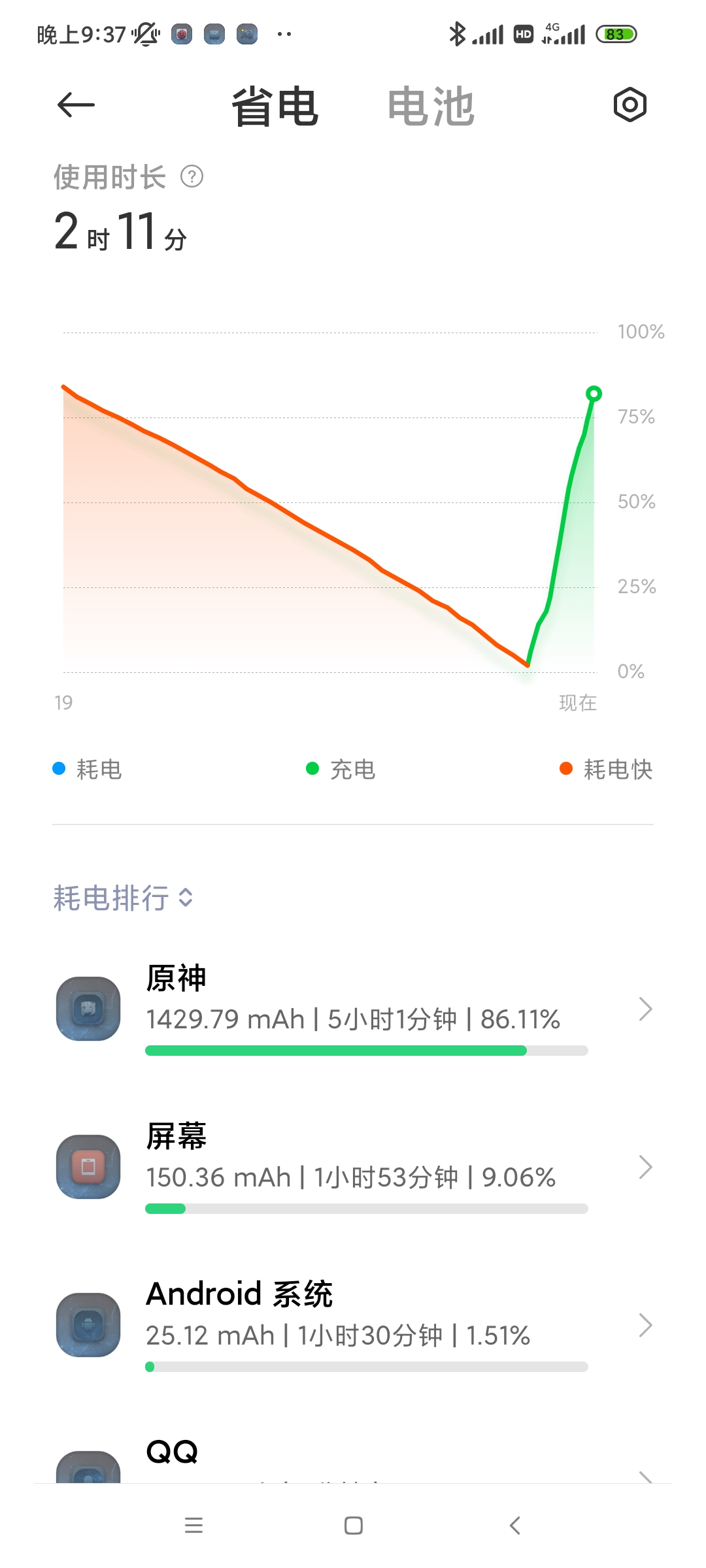白金之星黑鲨分星 发表于 2021-9-17 21:40 没事,我原神中画质60帧一小时就没电了,你比我好点