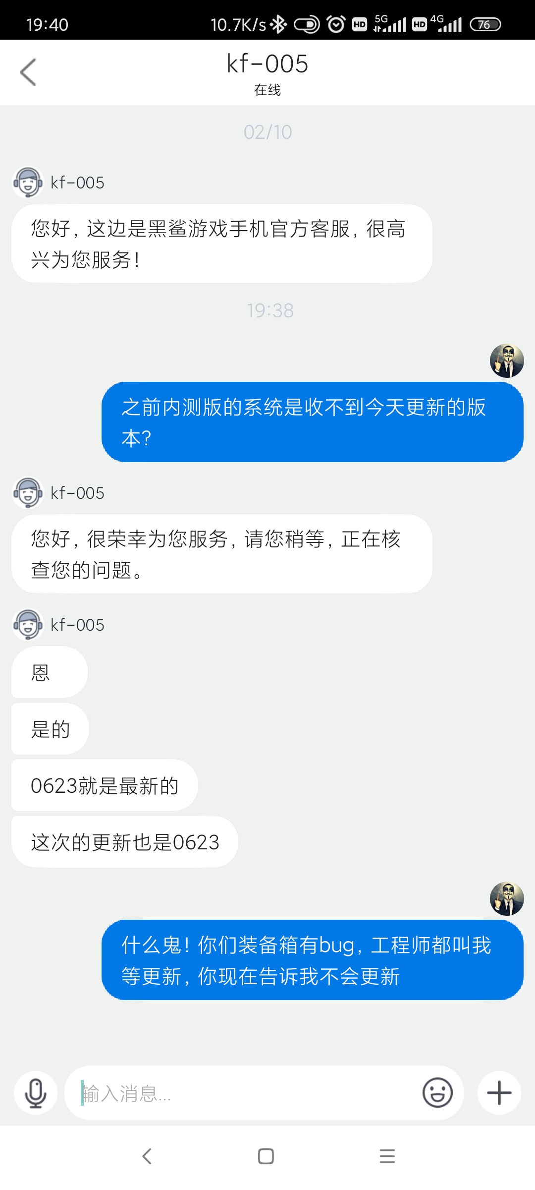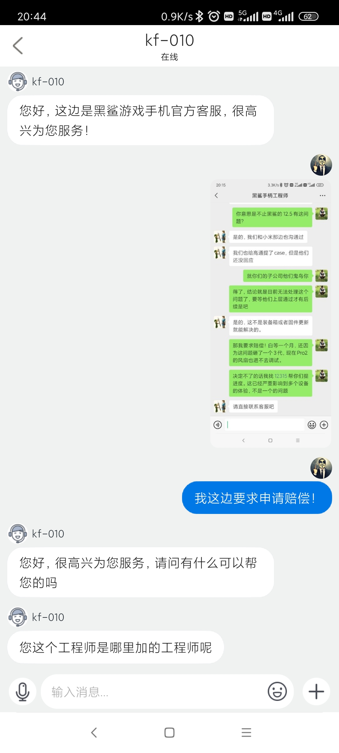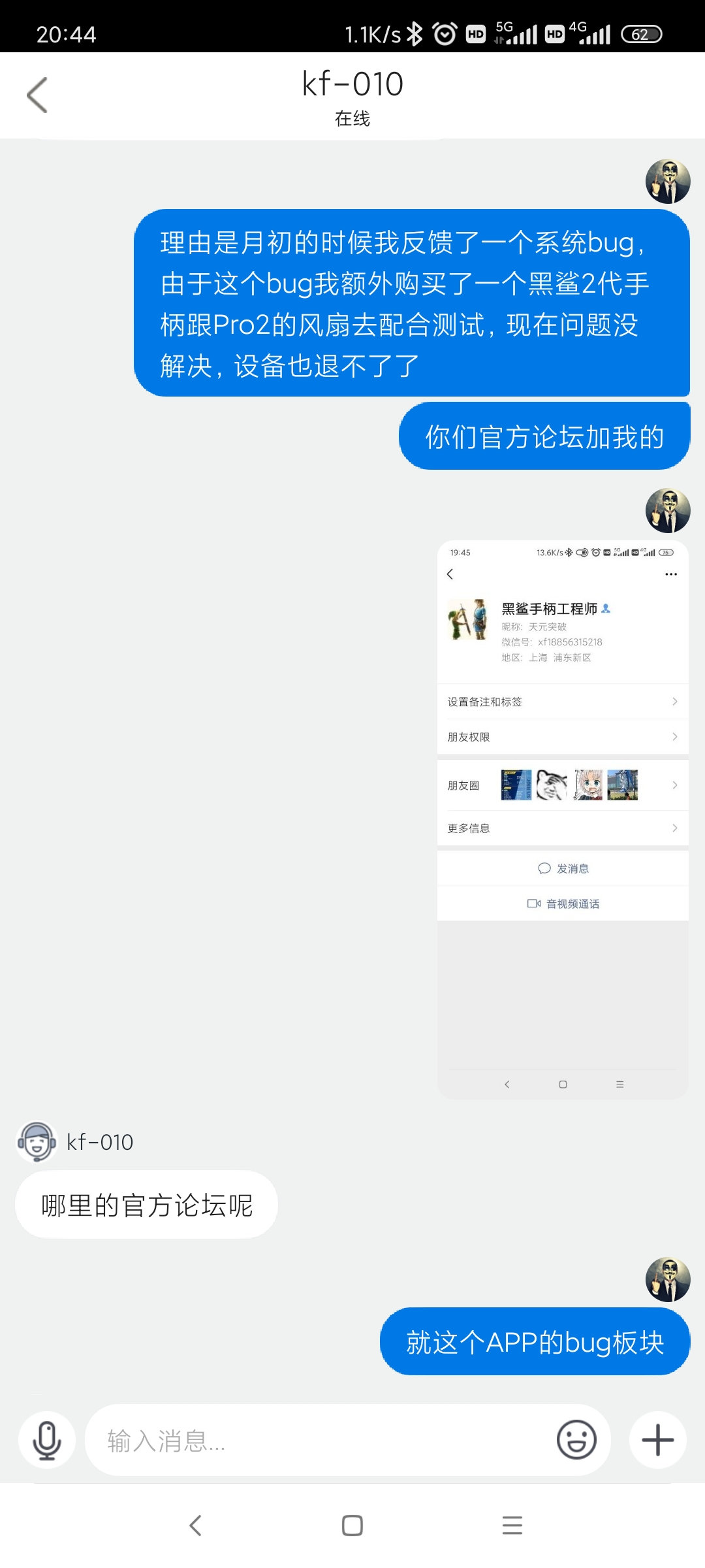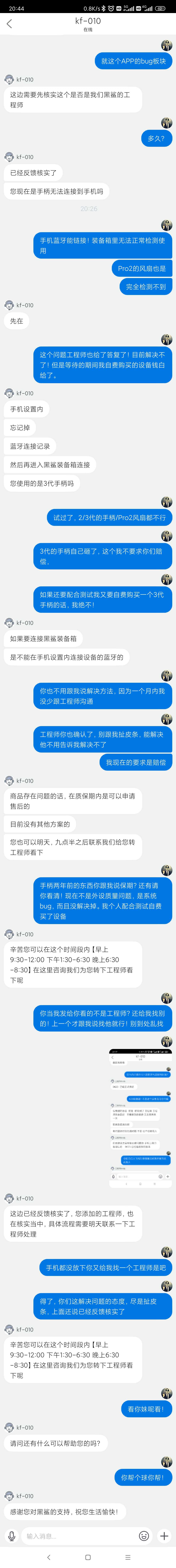 期间我为了配合测试解决问题我自费购买了一个2代手柄一个Pro2风扇。(原本是3代的,因为这个bug我自己砸了)现在肯定是退不了,因为过了一个月时间,(风扇半个月)找客服赔偿,外设不是质量问题更不可能退了。