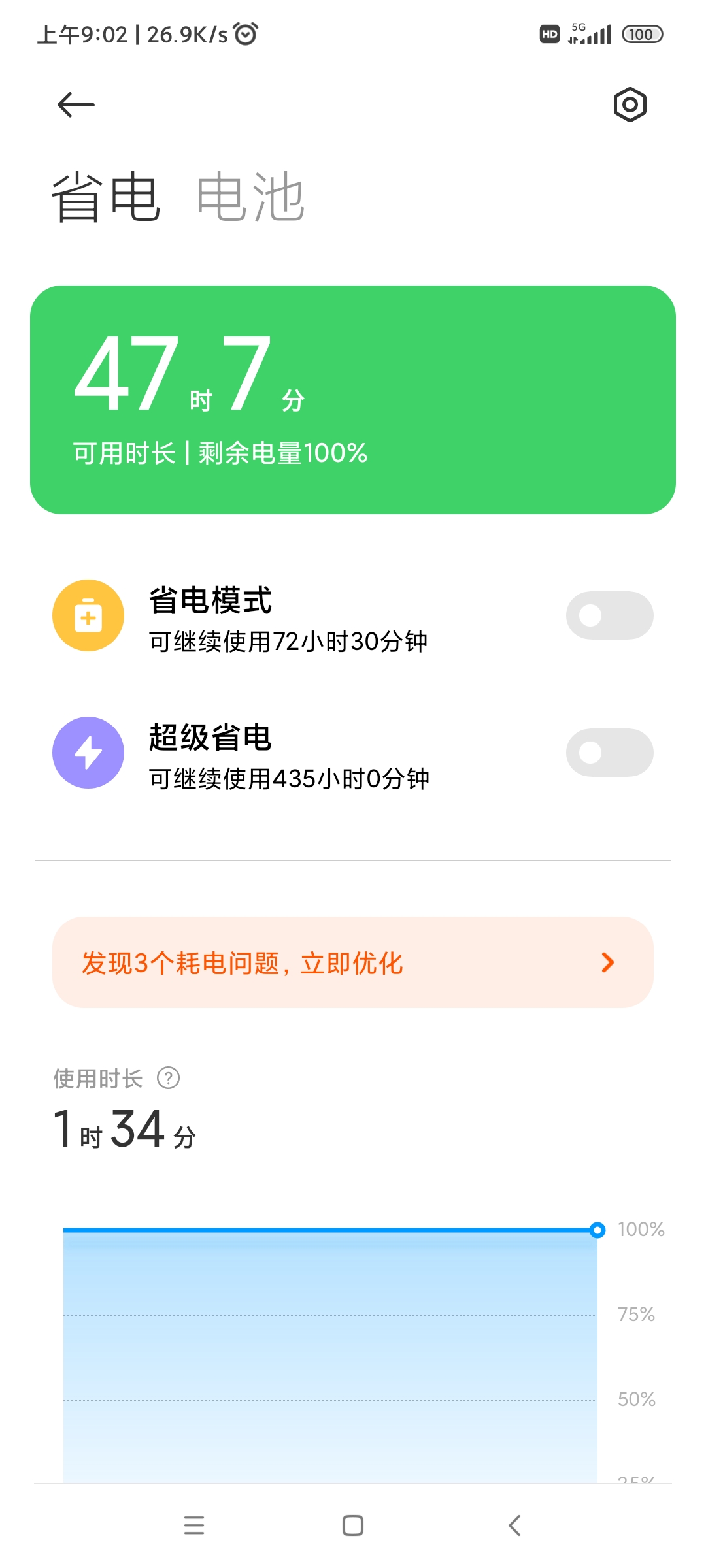百分之百1小时,剩下百分之99也是一小时 电量显示非常不准