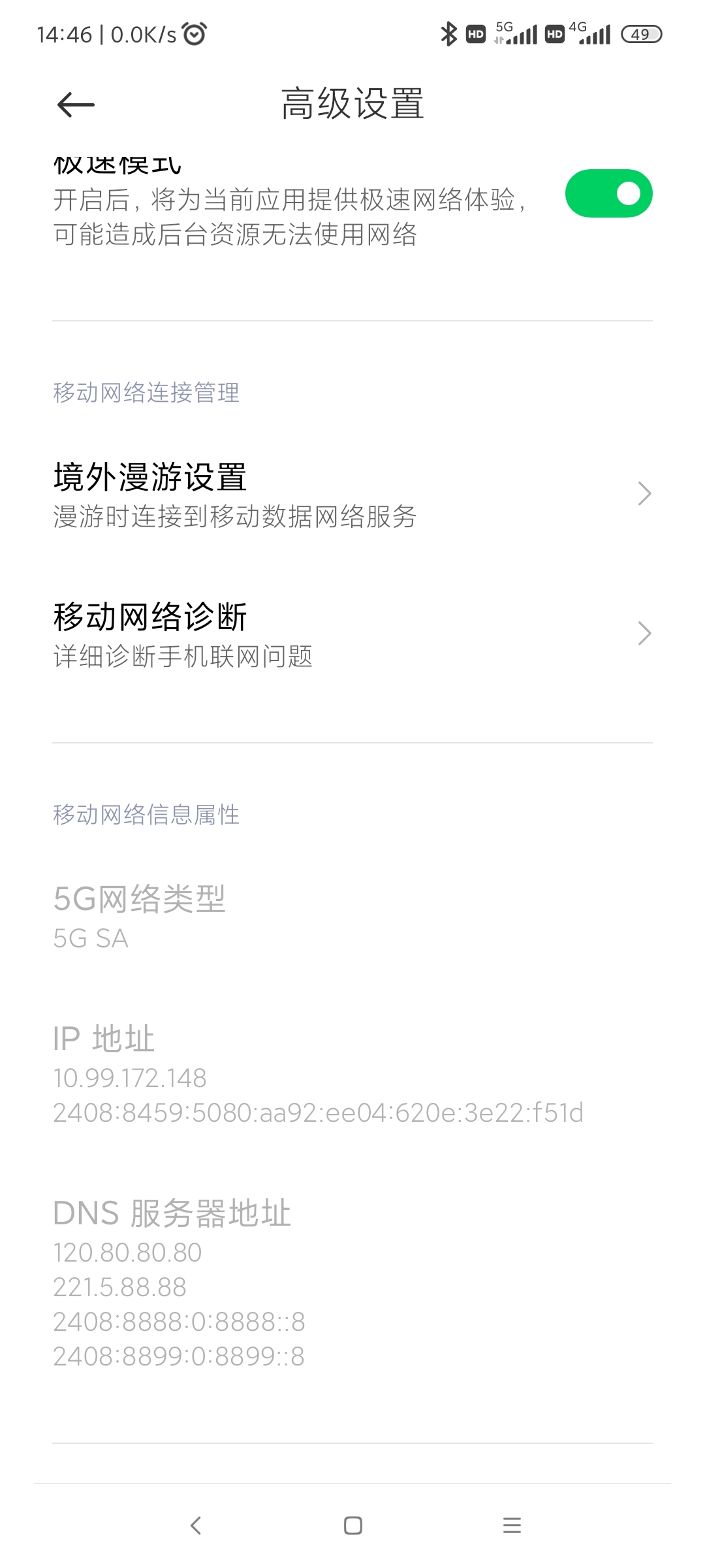 我这破县城都有sa5g网络,真假不知道网速50m/s