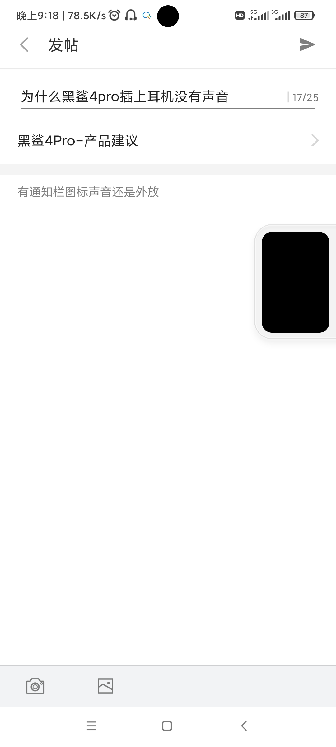 为什么黑鲨4pro插上耳机没有声音