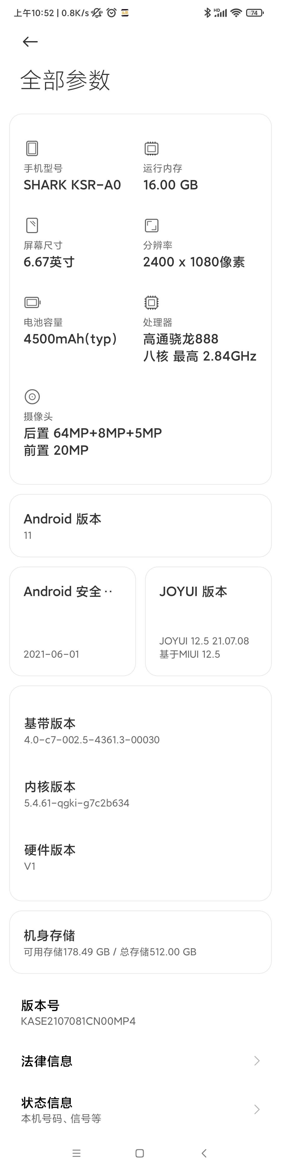 手机型号:黑鲨4por  16+512