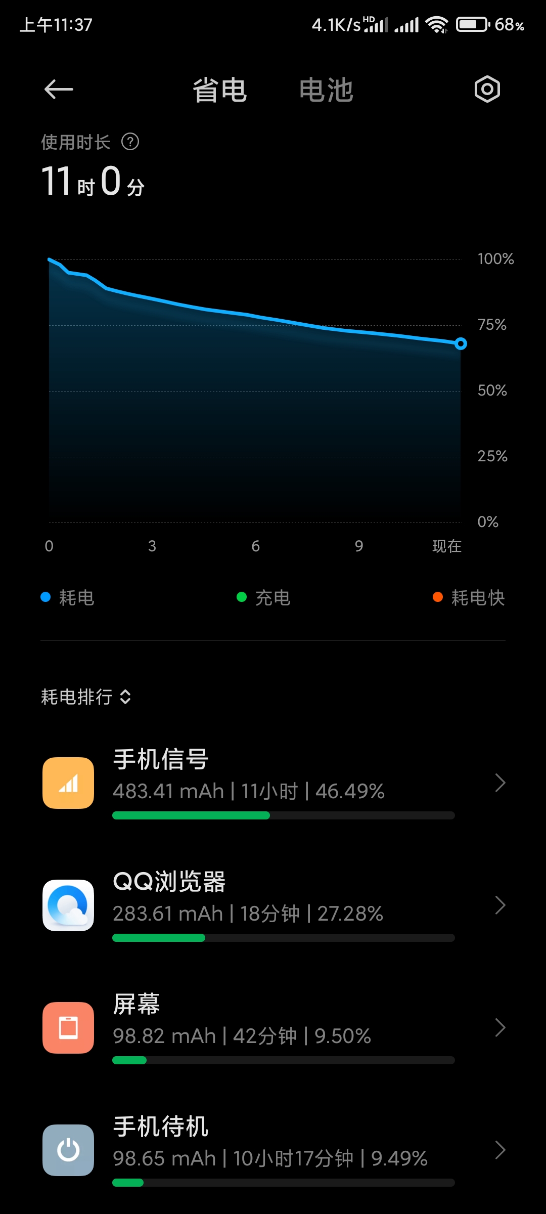 开着5G,就是待机一晚上,耗电也挺高的 ...