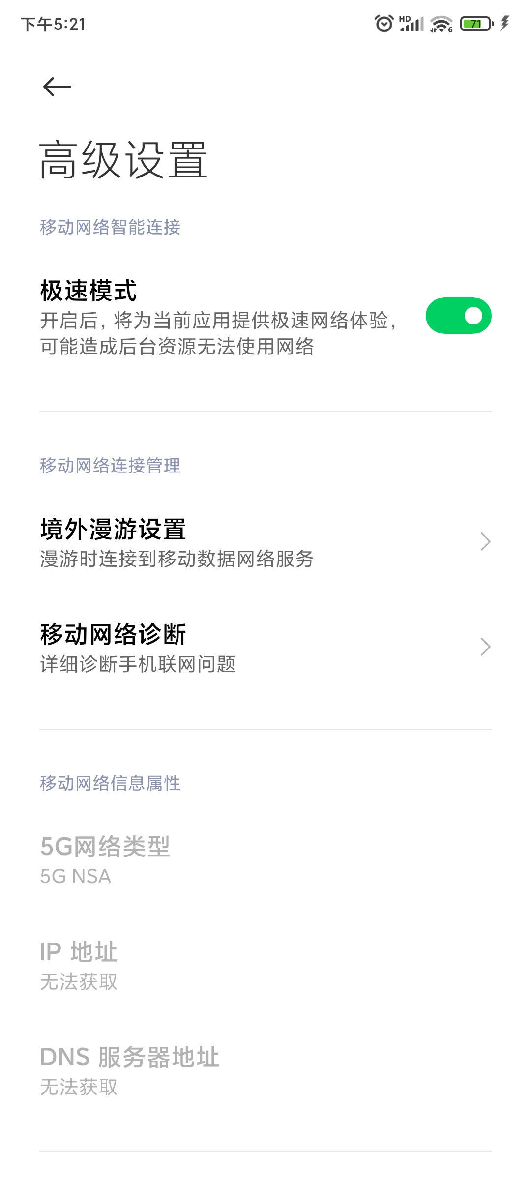你这情况不太妙啊,确实没有SA开关,是不是自动识别切换?你现在能用5G不