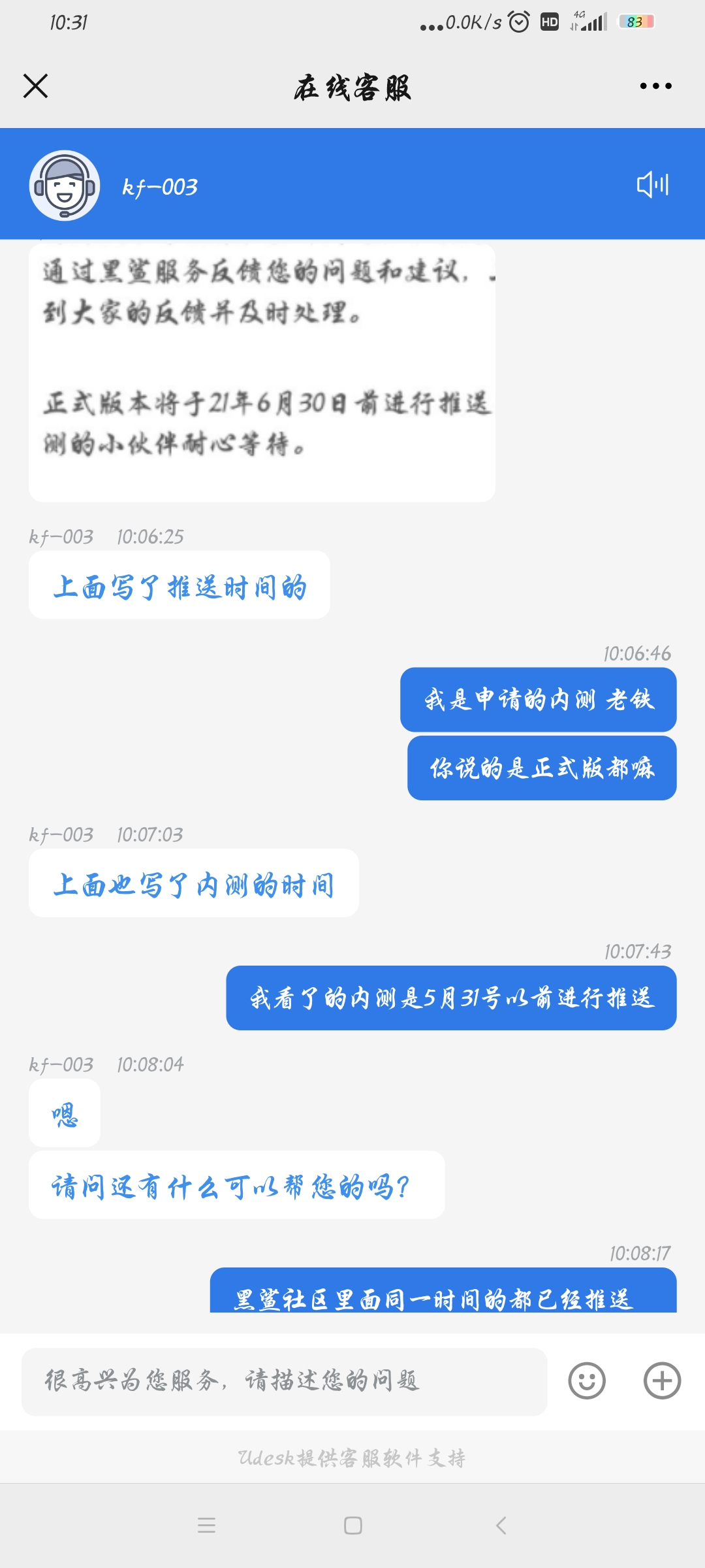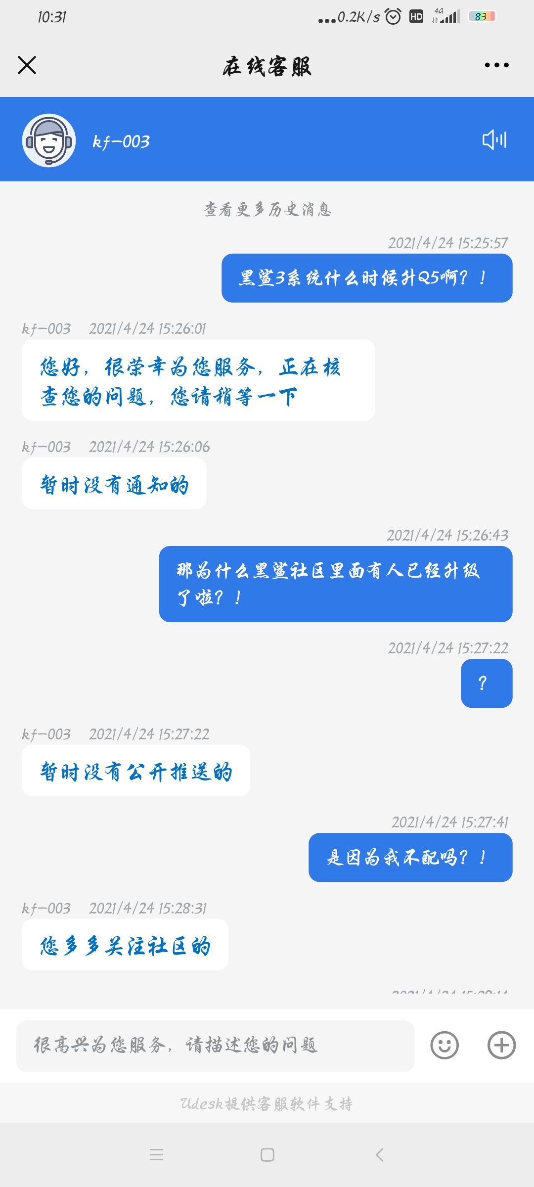 你特么是什么牛马 发表于 2021-5-23 10:38 问客服没用 只能等推送 你在怎么问也没有用