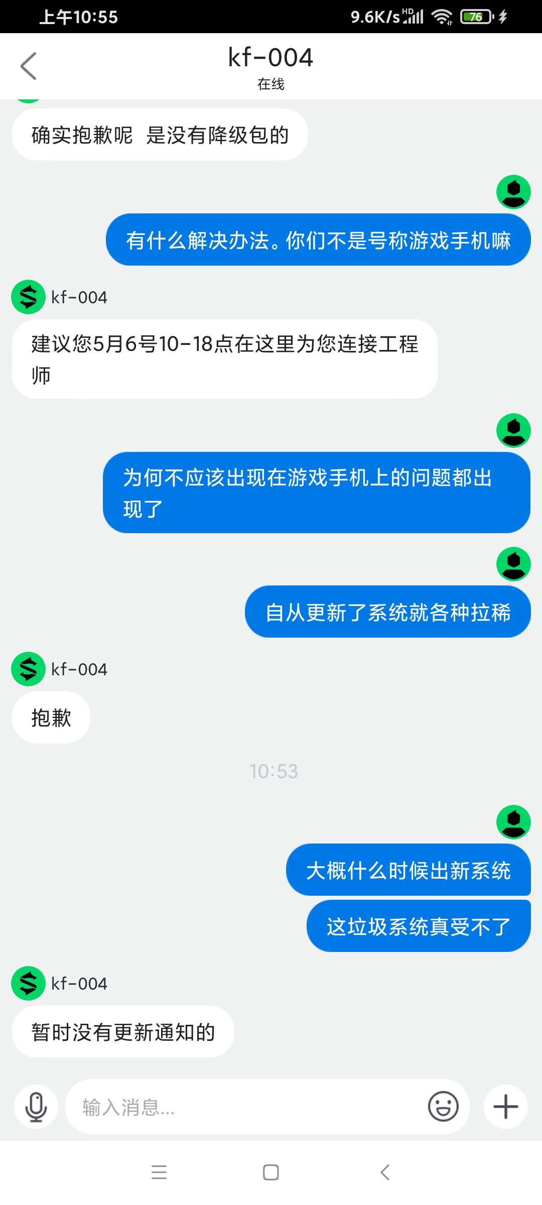 受不了了。再也不买黑鲨了。