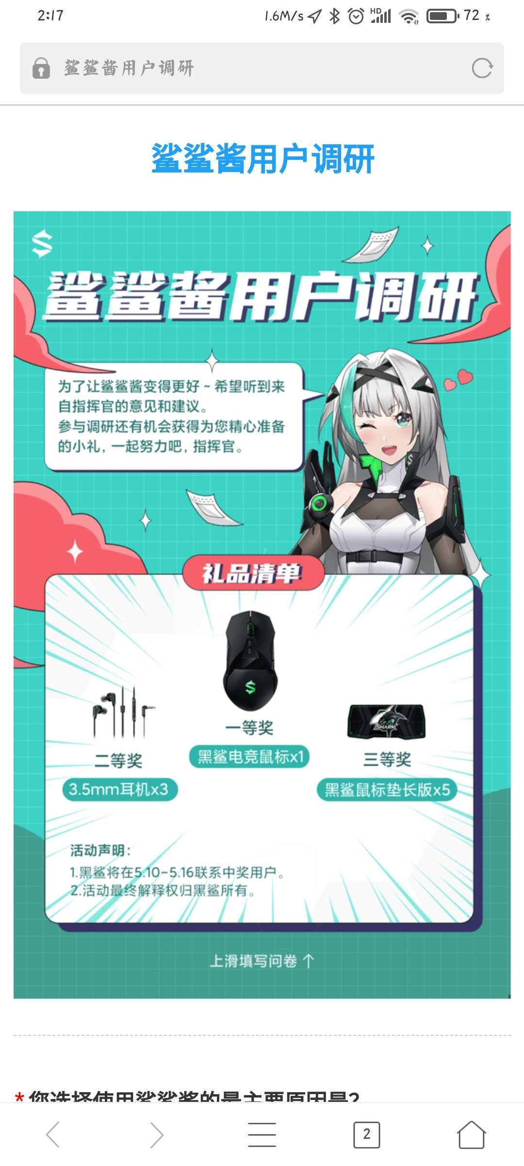 上个月那两个直播工程师直播说好的月底更新鲨鲨酱,我在那场直播2小时里面听过四五次说4月底3系列更,5月底2系列更新,结果3系列到了5月份了没更新,别说什么内测更了,很多人都不是内测,没有更,这是欺骗,严重的欺骗,这还没差,反正又没正式说,都可忍,然后呢,最让我脑怒的是今天我在手机通知里面看到了鲨鲨酱的调研,20个问答,我(脏话)都用都没用给我发这个 是不是太der了?我都佛了油啊。这是在干嘛啊?你们推送通知都不会选定客户吗,我一个3系没更新体验了啥?你发这个用户使用调研给我?