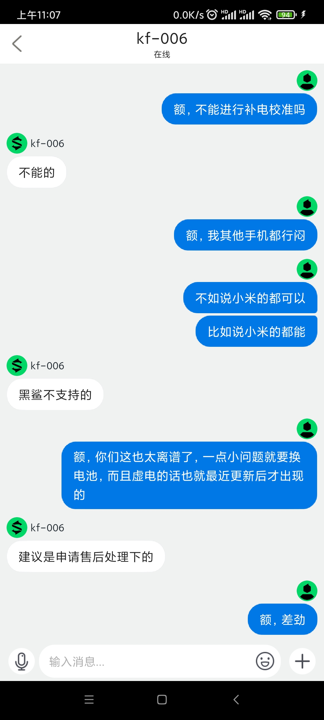 手机自己校准弄不好,问客服能不能补电,居然让我找售后换电池